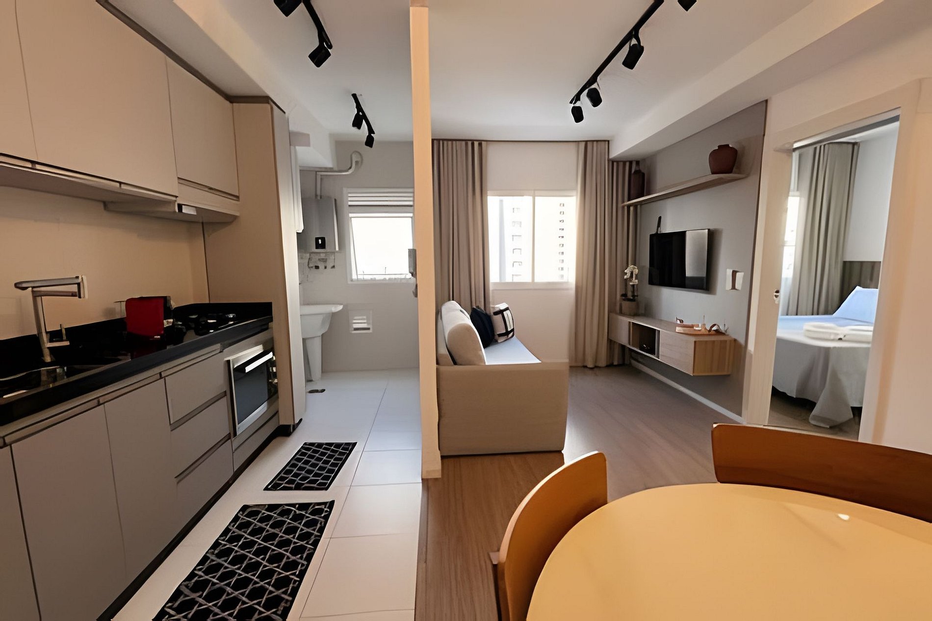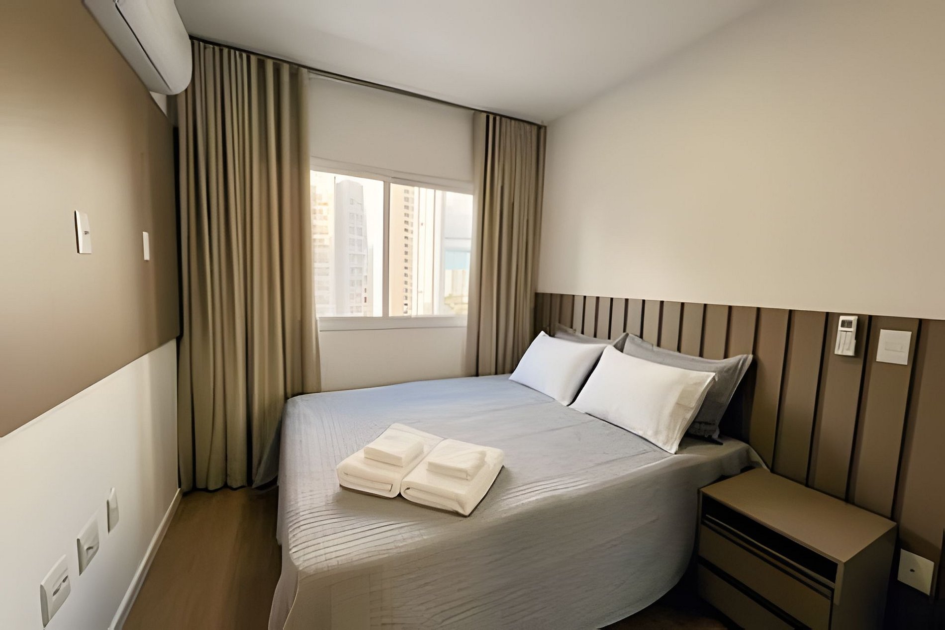 O apartamento de 01 quarto possui todas as comodidades que você precisa para passar alguns dias ou longas estadias em Londrina: - ar condicionado no quarto e na sala - cama QUEEN - sofá cama para 2 pessoas - secador de cabelos - ferro e tábua de passar roupas - Smart TV 43' e Wi-Fi - filtro de água - cafeteira Nespresso - forno elétrico - cooktop 4 bocas - microondas - liquidificador - sanduicheira elétrica - copos, taças - pratos e demais utensílios Fornecemos roupa de cama e banho! (não fazemos trocas diárias - fornecemos de acordo com o número de hóspedes - para toalhas/roupa de cama extra consultar valores).