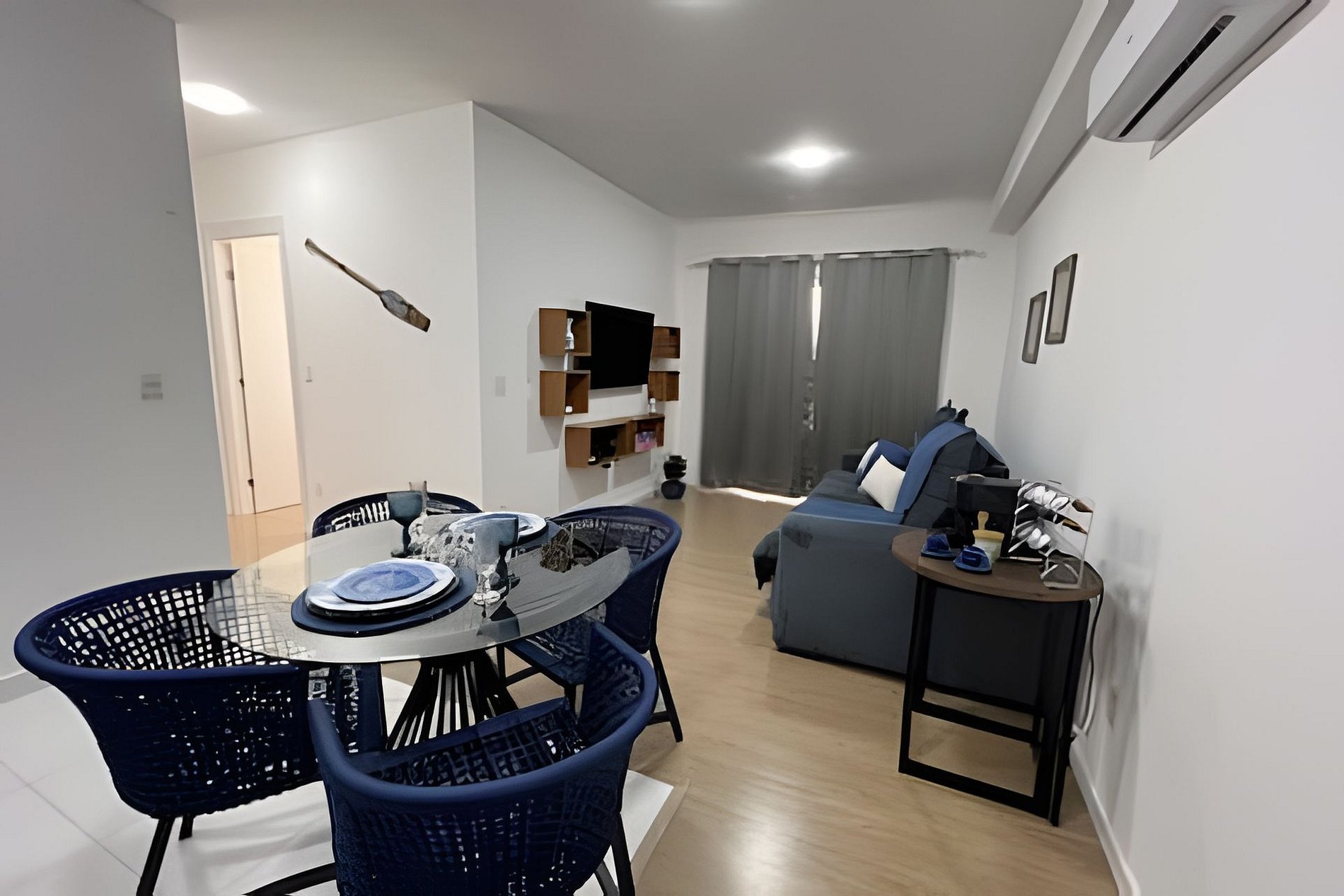 Apto com 2 quartos, novo e completo, sendo: - Uma suíte com cama queen, ar condicionado, Smart Tv e sacada; - Um quarto com cama de casal, ar condicionado e sacada; Sala com Smart Tv, wi-fi, ar condicionado; Cozinha completa: geladeira, microondas, forno, cooktop, cafeteira Nespresso e demais utensílios de cozinha: como pratos, talheres, panelas, copos e taças! Ampla sacada com acesso a sala e aos dois quartos. Fornecemos roupa de cama e banho! (não fazemos trocas diárias - fornecemos de acordo com o número de hóspedes - para toalhas/roupa de cama extra consultar valores). A taxa de limpeza no anúncio se refere a limpeza realizada após o checkout! No caso de hospedagens mais longas e o hóspede necessite de limpeza, ela deverá ser contratada à parte e o valor pago diretamente à empresa escolhida para o serviço. Condomínio com garagem privativa e portaria 24 hrs!