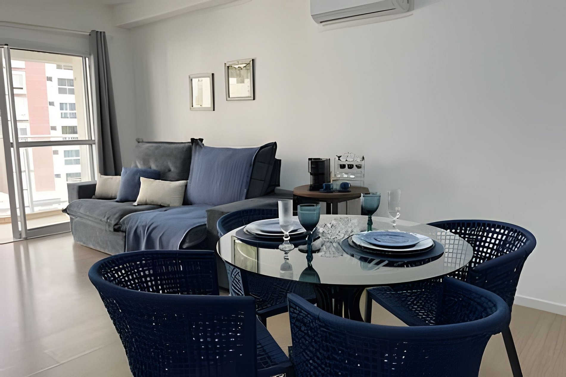 Apto com 2 quartos, novo e completo, sendo: - Uma suíte com cama queen, ar condicionado, Smart Tv e sacada; - Um quarto com cama de casal, ar condicionado e sacada; Sala com Smart Tv, wi-fi, ar condicionado; Cozinha completa: geladeira, microondas, forno, cooktop, cafeteira Nespresso e demais utensílios de cozinha: como pratos, talheres, panelas, copos e taças! Ampla sacada com acesso a sala e aos dois quartos. Fornecemos roupa de cama e banho! (não fazemos trocas diárias - fornecemos de acordo com o número de hóspedes - para toalhas/roupa de cama extra consultar valores). A taxa de limpeza no anúncio se refere a limpeza realizada após o checkout! No caso de hospedagens mais longas e o hóspede necessite de limpeza, ela deverá ser contratada à parte e o valor pago diretamente à empresa escolhida para o serviço. Condomínio com garagem privativa e portaria 24 hrs!